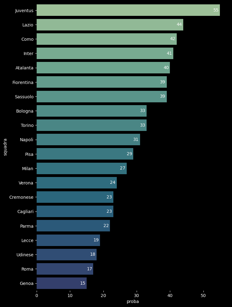 La classifica è calcolata dalle quote dei bookmakers, ricorda che: