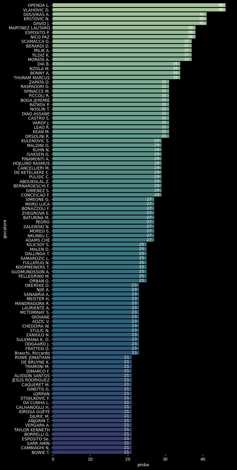 Classifica Probabili Marcatori di giornata